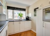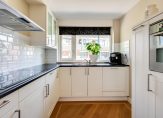Aan de voorzijde bevindt zich de open keuken welke is ingericht met een moderne L-vormige keukenopstelling voorzien van alle benodigde inbouw apparatuur.