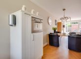 Ruime entree, moderne toiletruimte met fonteintje, meterkast, de sfeervolle uitgebouwde woonkamer heeft een enorme glas pui aan de achterzijde met openslaande deuren waardoor er een mooie lichtinval ontstaat tevens is er een ruime trapkast.