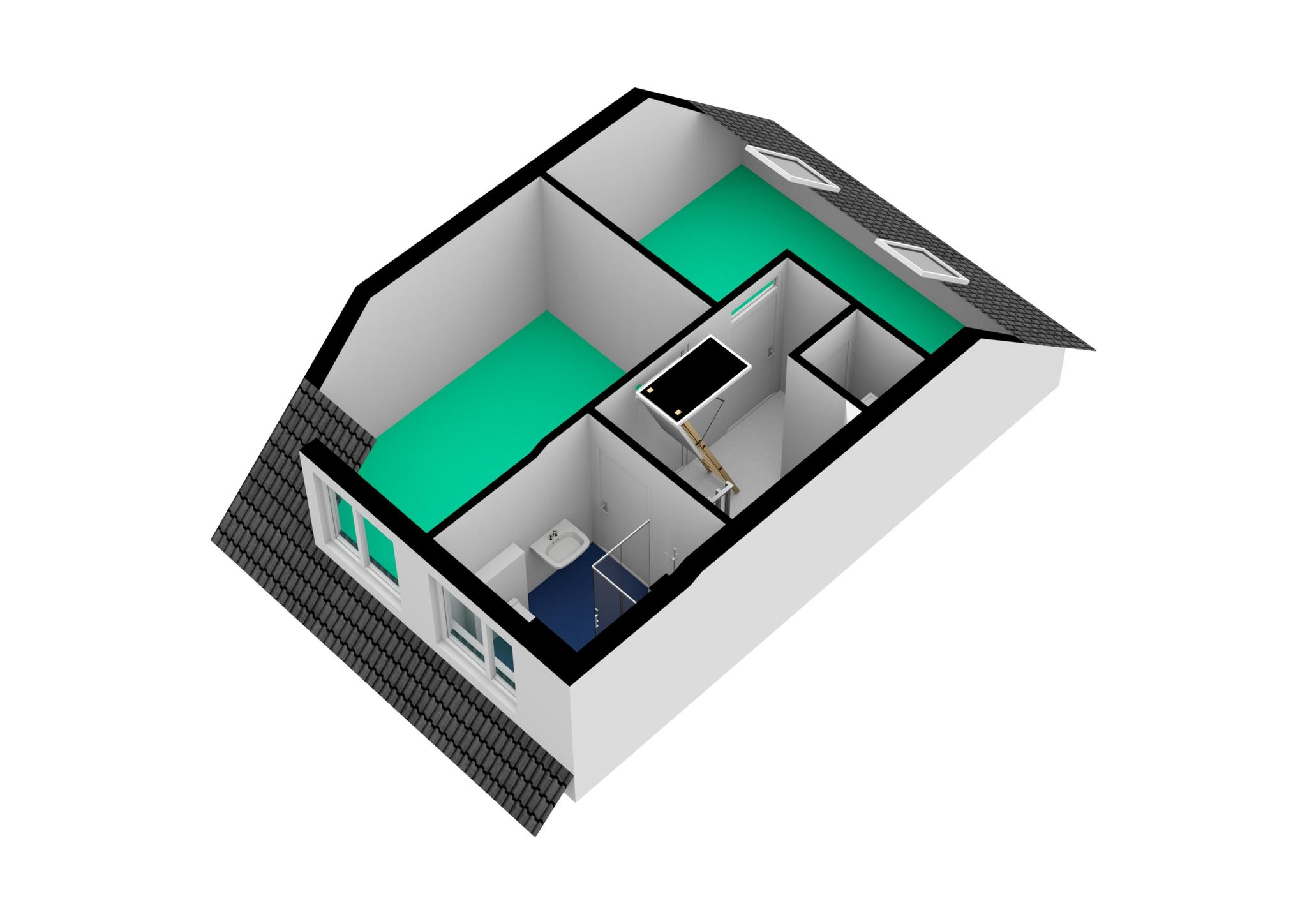 Overloop, aparte ruimte met aansluitingen voor de was apparatuur, aan de achterzijde is een ruime slaapkamer met 2 grote dakramen aanwezig en aan de voorzijde is de 2e slaapkamer uitgevoerd met een dakkapel, de badkamer is ingericht met een douche, vaste wastafel met meubel en aansluiting voor een 2e toilet.