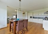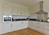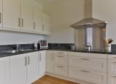 De keuken is opgesteld in een L-vorm en beschikt over de volgende inbouwapparatuur: combi-oven, koel- en vriescombinatie, vaatwasmachine, 1 ½ e spoelbak, carrouselkast, keramische kookplaat met RVS-afzuigschouw en pannenlades. De keuken is afgewerkt met een stenen aanrechtblad.