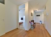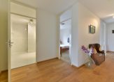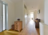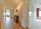 De indeling is zeer comfortabel en royaal. U bereikt via de ruime hal en gang de diverse vertrekken waaronder de twee slaapkamers, de badkamer met inloopdouche, wastafel en tweede w.c., de bergkast met opstelplaats voor de wasapparatuur en de toiletruimte met wandcloset en fonteintje.