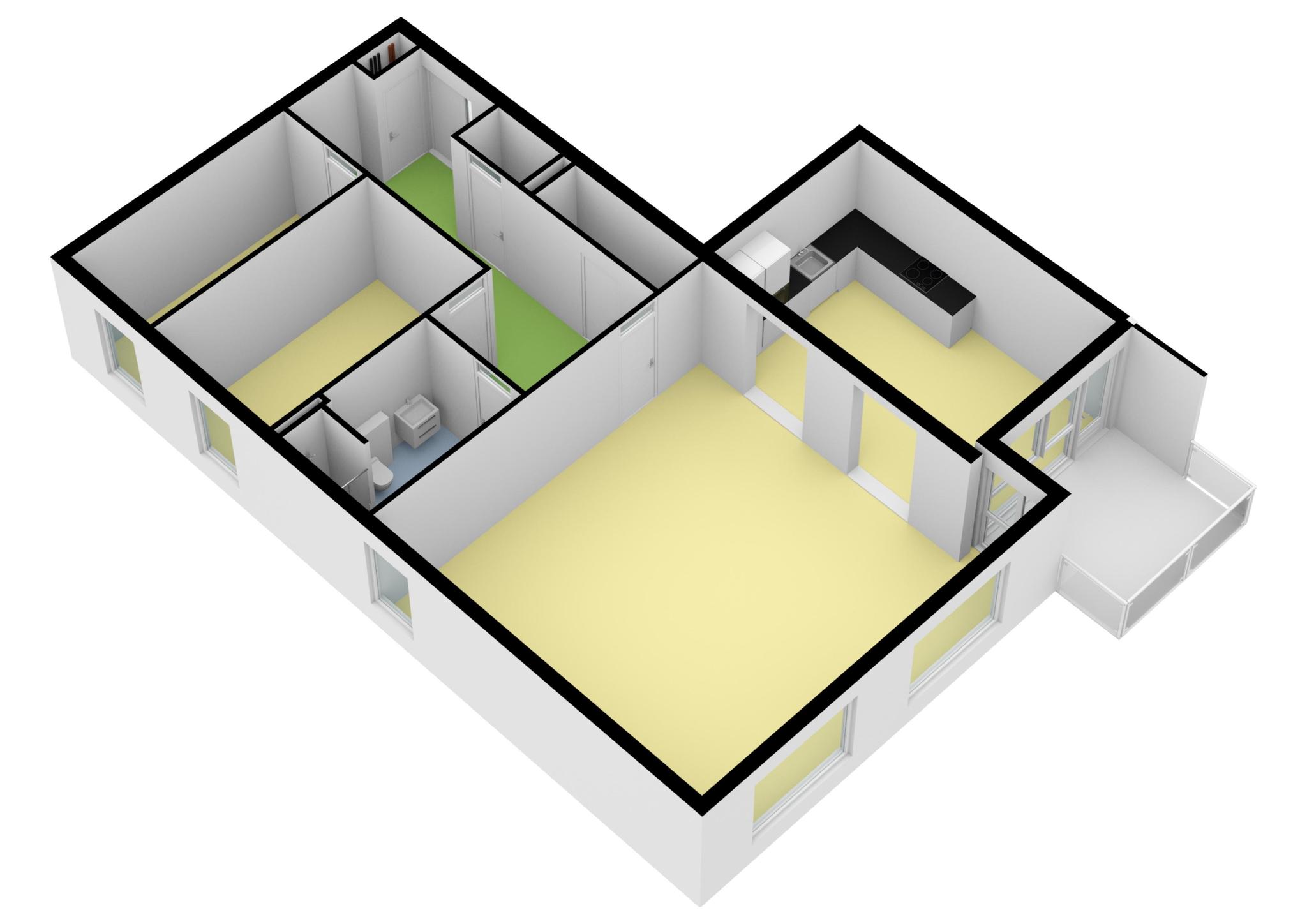 Pronkstuk van dit appartement is de woonkamer. Deze is maar liefst 50 m2 groot en staat in open verbinding met de woonkeuken. Deze woonkeuken van 19 m2 heeft een grote in hoek opgestelde keuken voorzien van inbouwapparatuur. Vanuit de woonkeuken is er toegang tot het balkon met prachtig uitzicht.