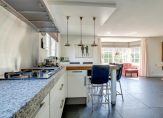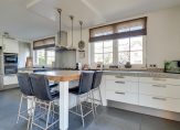 Royale entree met een handige voorraadkast, de meterkast en de toiletruimte met zwevend toilet en fontein. De ruimte ervaar je direct als je de riante living met de mooie leistenen vloer binnenloopt. De vele raampartijen in de woning zorgen voor een prachtige lichtinval. De moderne keuken is voorzien van een oven/magnetron combinatie, een oven, een gaskookplaat met wokbrander, een grillplaat, een vaatwasser en een Amerikaanse koelkast. Er is een ruime werkkamer en een wasruimte/bijkeuken op de begane grond. In de royale tuin met de gunstige zonligging en de gezellige veranda kan je heerlijk genieten met het gezin of met vrienden.