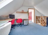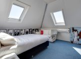 Op de royale voorzolder is veel ruimte om spullen op te bergen en er is ook veel ruimte voor bijvoorbeeld een werkplek. Ook is er een riante slaapkamer, eveneens met airco, met een vaste kast op deze verdieping.