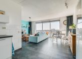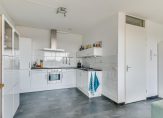 Je bent hier letterlijk ‘on top of the world’! Vanuit de woonkamer geniet je van een prachtig en vrij uitzicht over de woonwijk en is het echt wegdromen bij het avondrood van weer zo’n prachtige zonsondergang. De raampartijen zijn in de zomermaanden voor een groot gedeelte te openen waardoor je het balkon bij de woonkamer betrekt. De ruimtelijke indeling zal zeker aanspreken. Het is dan wel een appartement met twee kamers maar die zijn wel royaal. De woonkamer bijvoorbeeld is gesitueerd over de volledige breedte van het appartement en staat in directe verbinding met de open keuken die is voorzien van inbouwapparatuur. Vanuit de gang heb je toegang tot de mooie slaapkamer, de licht betegelde badkamer met wastafel, radiator en inloopdouche en de aparte toiletruimte met wandcloset en fonteintje. Ook heb je de beschikking over een wasruimte waar je je wasapparatuur kunt plaatsen.