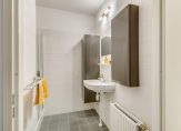Tevens heb je in in de gang toegang tot de aparte toiletruimte met wandcloset en fonteintje en de badkamer met wastafelmeubel, inloopdouche en radiator. Naast de badkamer is de inpandige berging aanwezig met opstelplaats voor je wasmachine en droger.