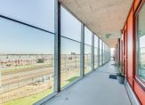 De drie grote raampartijen, waarvan er twee open kunnen d.m.v. een schuifpui, bieden je toegang tot het balkon op het Westen, hier heb je prachtig vrij uitzicht over Houten.