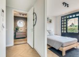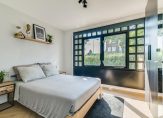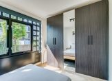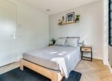 De slaapkamer heeft een afmeting van 3.68 m x 3.00 (11 m2) en heeft mooie lichtinval door de speelse kozijnpartijen.