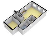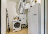 In de woonkamer is tevens de inpandige berging aanwezig met opstelplaats voor de wasapparatuur, warmtepomp en boiler.