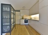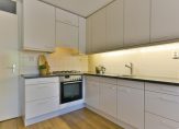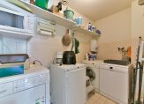Bijkeuken van 4 m2 met opstelplaats wasapparatuur en opbergmogelijkheden.