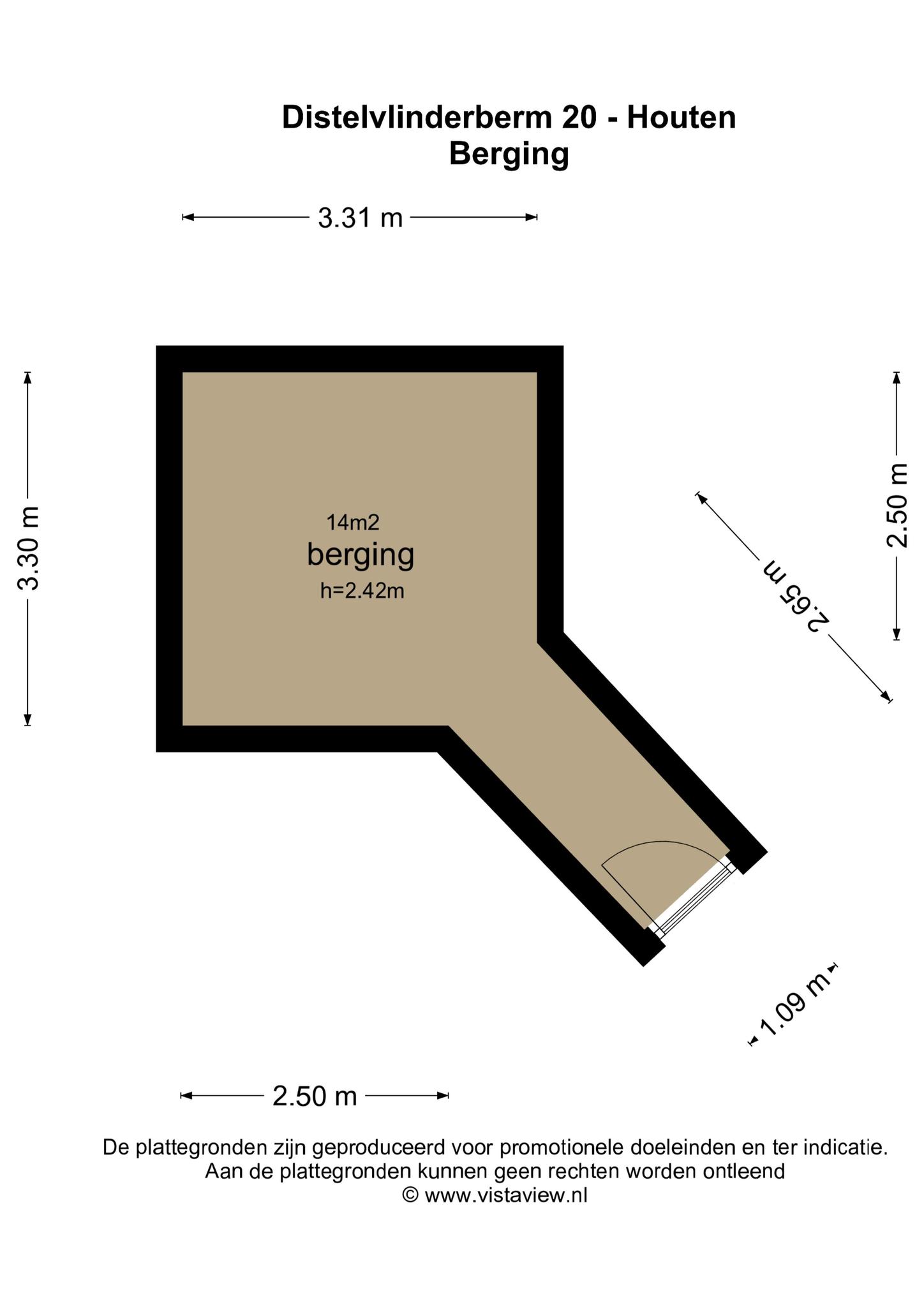 De berging in de onderbouw is circa 14 m2 groot.