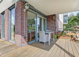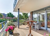 Licht, ruim en rustig gelegen zeer goed onderhouden 3 kamer begane grond APPARTEMENT met een groot terras aan het water, luxe uitgevoerd en met een eigen entree.