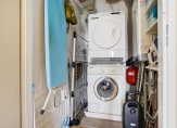 Eigen entree aan de zijkant van het appartementencomplex met bergruimte met CV-ketel en opstelplaats voor de wasmachine en droger, apart modern toilet met fonteintje.