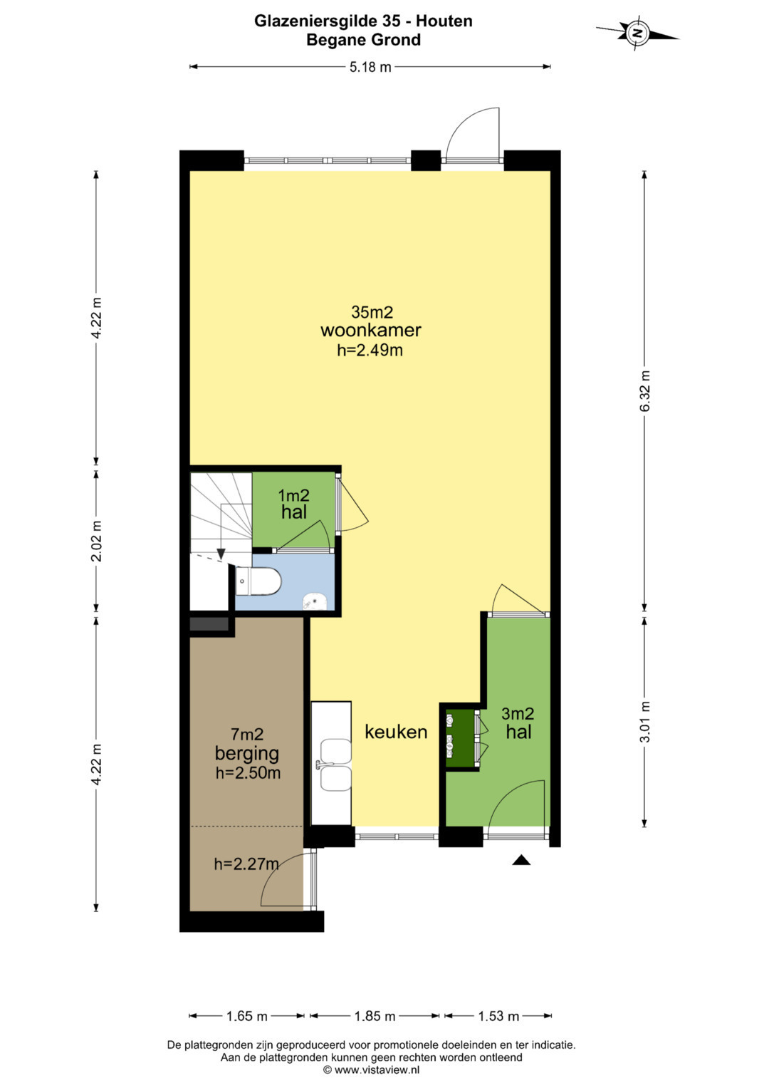 De keukenopstelling bevindt zich aan de voorzijde en betreft een keurig keukenblokje. Tuindeur naar achtertuin gelegen op het Zuidwesten. De begane grond is voorzien van een laminaatvloer.