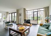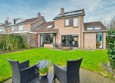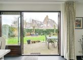 De openslaande deuren geven toegang tot de riante aangelegde tuin met diverse terrassen.