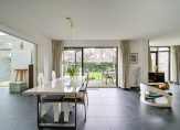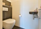 Vanuit de hal met meterkast en luxe ingerichte toiletruimte met wandcloset en hardstenen fonteintje kom je in het leefgedeelte.