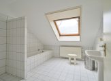 De ruime badkamer is modern en voldoet aan de hedendaagse wens door de inloopdouche en het ligbad. Het separaat toilet heeft een fonteintje.