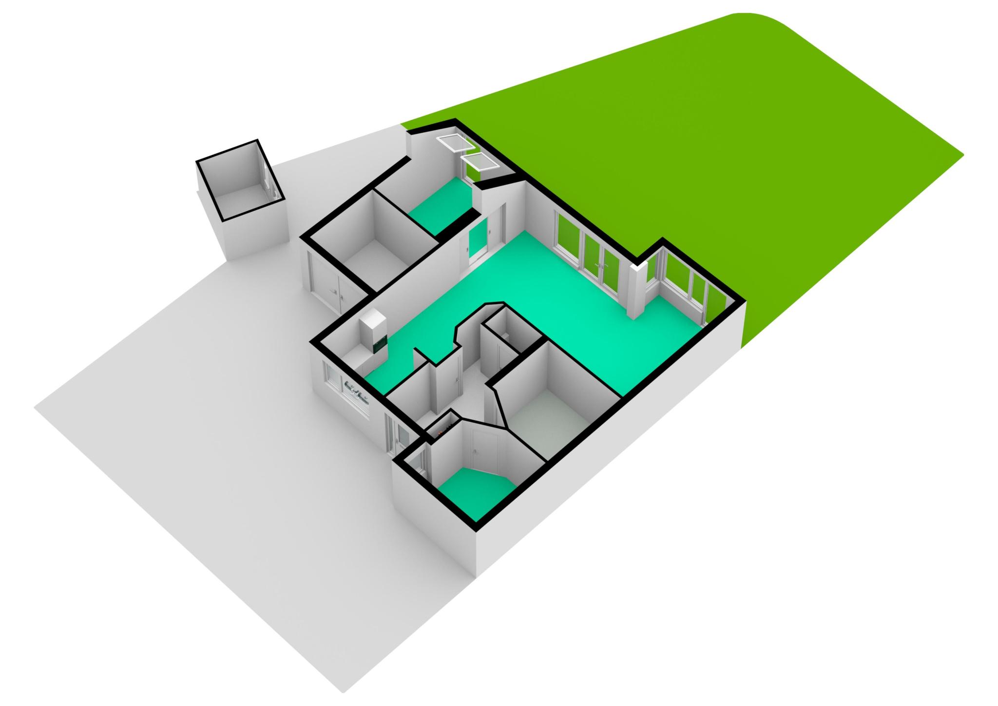 De zijaanbouw welke bereikbaar en afsluitbaar is middels schuifdeuren maken het geheel compleet.