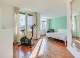 Op de eerste verdieping zijn drie mooie ruimtes aanwezig; twee slaapkamers en de slaap-/ kantoorruimte. De grote slaapkamer aan de voorzijde kan worden gesplitst in twee kamers. De dubbele balkondeuren geven je toegang tot het speelse balkon met leuk zicht de straat in. De slaapkamer aan de achterzijde beschikt eveneens over een balkon. Ook tref je op deze verdieping de lichte badkamer aan voorzien van douche, tweede w.c. en een ligbad. De overloop geniet van een mooie lichtinval door het trappenhuis met erker en raampartijen.
