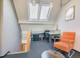 De voormalige garage is omgebouwd tot kantoor aan huis en heeft een eigen entree aan de voorzijde van de woning. Het kantoor is circa 14 m2 groot met een trap naar de bovengelegen extra kantoorruimte (- of slaapkamer). Het kantoor of werkplek op de eerste verdieping van ca. 16 m2 heeft drie dakramen, elektrische vloerverwarming en airconditioning. Interne deur met toegang tot het woonhuis op de eerste verdieping.