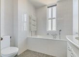 Op de eerste verdieping zijn drie mooie ruimtes aanwezig; twee slaapkamers en de slaap-/ kantoorruimte. De grote slaapkamer aan de voorzijde kan worden gesplitst in twee kamers. De dubbele balkondeuren geven je toegang tot het speelse balkon met leuk zicht de straat in. De slaapkamer aan de achterzijde beschikt eveneens over een balkon. Ook tref je op deze verdieping de lichte badkamer aan voorzien van douche, tweede w.c. en een ligbad. De overloop geniet van een mooie lichtinval door het trappenhuis met erker en raampartijen.