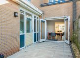 De achtertuin is gelegen op het Westen met altijd wel een plek in de zon en schaduw. Deze tuin is netjes bestraat en onderhoudsvriendelijk aangelegd.