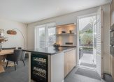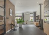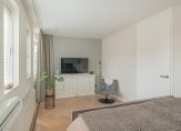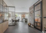 De sfeervolle woonkamer met houtkachel, draaibaar zodat je ook vanuit de keuken hier van kunt genieten, zorgt in de wintermaanden voor een huiselijke sfeer met een vleugje romantiek. De nieuw geplaatste maatwerk keuken bevindt zich aan de achterzijde van de woning in de uitgebouwde woonkeuken. Deze is uitgerust met topkwaliteit inbouwapparatuur van onder andere het merk Miele en beschikt onder andere over een wijnklimaatkast, Bora inductiekookplaat en een Quooker. Er is voldoende ruimte voor een groot formaat eettafel maar even gezellig zitten aan de bar van de keuken is natuurlijk ook mogelijk. De begane grond beschikt over vloerverwarming, airconditioning, nieuwe vensterbanken, nieuw geplaatste binnendeuren en spanplafonds met inbouwverlichting. Het mooie stalen frame tussen living en keuken, de zwarte kozijnen in combinatie met de mooie deuren zorgen hier voor de ‘finishing touch’!