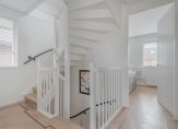 De eerste verdieping is ingedeeld met een ruime overloop die je toegang biedt tot de twee mooie slaapkamers, de kastenkamer met vaste schuifkasten en de in 2020 volledig vernieuwde exclusieve maatwerk badkamer. Luxe en comfort staan ook hier centraal. Er is een ruime inloopdouche aanwezig met regendouche, handdouche en sunshower. Verder tref je in deze badkamer een luxe wastafelmeubel aan met dubbele wastafels, spiegels met verwarming en verlichting, lades, houten opbergvakken, vloerverwarming, luxe wandcloset en een designradiator. Ook deze verdieping is afgewerkt met spanplafonds en inbouwspots, airconditioning en is als vloerafwerking gekozen voor een lichte visgraat parketvloer. De trappen naar de eerste en tweede verdieping zijn door het bedrijf ‘Upstairs’ opnieuw voorzien van een mooie houten afwerking.