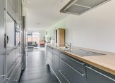 Je bereikt de woning via de lichte en ruime hal waar je de garderobe aantreft en de moderne toiletruimte. De woonkamer is acht meter breed en heeft een oppervlakte van ruim 50 m2. Aan de voorzijde is de keuken gesitueerd die is uitgerust met een kookeiland en diverse inbouwapparatuur. Ook vanuit de keuken is er mooi uitzicht op het terras en waterpartij; het terras bereik je vanuit de keuken via de dubbele tuindeuren. De platte daken van de uitbouw zijn zeer geschikt voor het plaatsen van zonnepanelen.