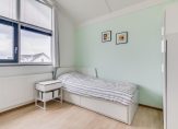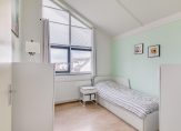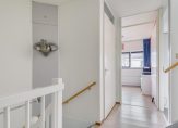 Overloop, wasruimte met opstelling C.V.-ketel en de vierde slaapkamer van 10m2 met hoog plafond. Extra bergruimte op de bergzolder.