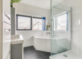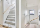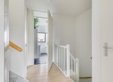 De ruime overloop op de eerste verdieping biedt toegang tot de drie slaapkamers, één met vaste kastruimte, een separate toiletruimte en de licht betegelde badkamer met hoekligbad douche en wastafelmeubel. De slaapkamer aan de voorzijde heeft een frans balkon waardoor je in de late avonduurtjes ook kunt genieten van een heerlijke zomeravond. De ruime overloop brengt je ook naar de tweede verdieping, hier is de praktische wasruimte en de vierde slaapkamer gesitueerd. Extra bergruimte is aanwezig boven de overloop.