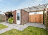 Ruime achtertuin met veranda van ca. 15 m2 en stenen berging van 8m2. De zonligging is zuidoosten. De zijtuin beschikt over een poortdeur naar de achtertuin zodat je van het terras eenvoudig de achtertuin kunt bereiken. Aan de achtergevel is een groot elektrisch bedienbaar zonnescherm geplaatst.