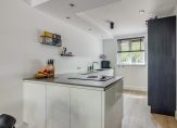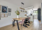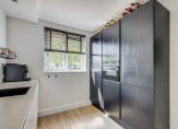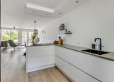 De moderne keuken is aan de voorzijde van de woning gesitueerd en voorzien van de volgende inbouwapparatuur: Bora inductiekookplaat, Quooker en Siemens vaatwasmachine, -combi-oven, -koelkast, -vriezer en veel opbergruimte in de kastruimte.