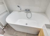 Op de eerste verdieping bevinden zich twee ruime slaapkamers en de badkamer. Deze badkamer is eveneens vernieuwd en voorzien van licht en strak tegelwerk, een douche met glazen wand, wastafelmeubel met dubbele kranen en een ligbad. Het dakvenster zorgt voor een mooie lichtinval en verwarmen doe je middels de designradiator. De slaapkamer aan de voorzijde is uitgerust met elektrische rolluiken en een vaste kast.