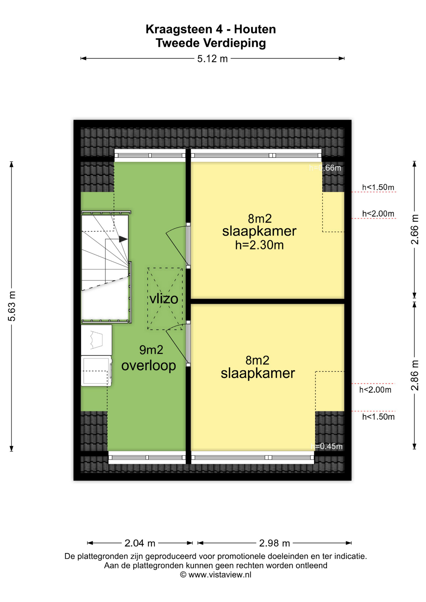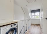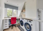TWEEDE VERDIEPING: voorzolder met opstelplaats wasapparatuur, werkplek, vlizotrap naar bergzolder en toegang tot de twee slaapkamers.