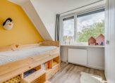 Door de twee dakkapellen op de tweede verdieping zijn er twee mooie slaapkamers gerealiseerd. De voorzolder profiteert ook van deze dakkapellen waardoor deze ook geniet van een mooie lichtinval. Hier is een leuke werkplek gerealiseerd en tref je de opstelplaats voor wasmachine en droger aan. Extra bergruimte bevindt zich op de zolder, deze is toegankelijk via de vlizotrap en biedt net dat beetje extra opbergruimte wat je bij andere woningen te kort komt.