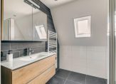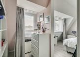 EERSTE VERDIEPING: Overloop, toegang tot de slaapkamers van: 13 en 11 m2. Luxe en moderne badkamer die is voorzien van een wandcloset, inloopdouche, designradiator, wastafel in meubel en raampartij ten behoeve van natuurlijke ventilatie. Stookruimte c.q. vaste kast met opstelplaats c.v.-ketel (2017) Vaillant en mechanische ventilatiebox. Naast de slaapkamer aan de achterzijde een ruime inloopkast van 6 m2 met handige schuifdeur. Brede dakkapel aan de achterzijde met ingebouwde zonwering (rolluik) en horren.