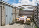 Tuingerichte woonkamer met pvc vloer. Deze moderne vloer ligt op de gehele begane grond. Tuindeur naar de fraaie aangelegde achtertuin op het Zuidoosten met stenen berging van 9 m2 en een achterom.