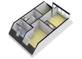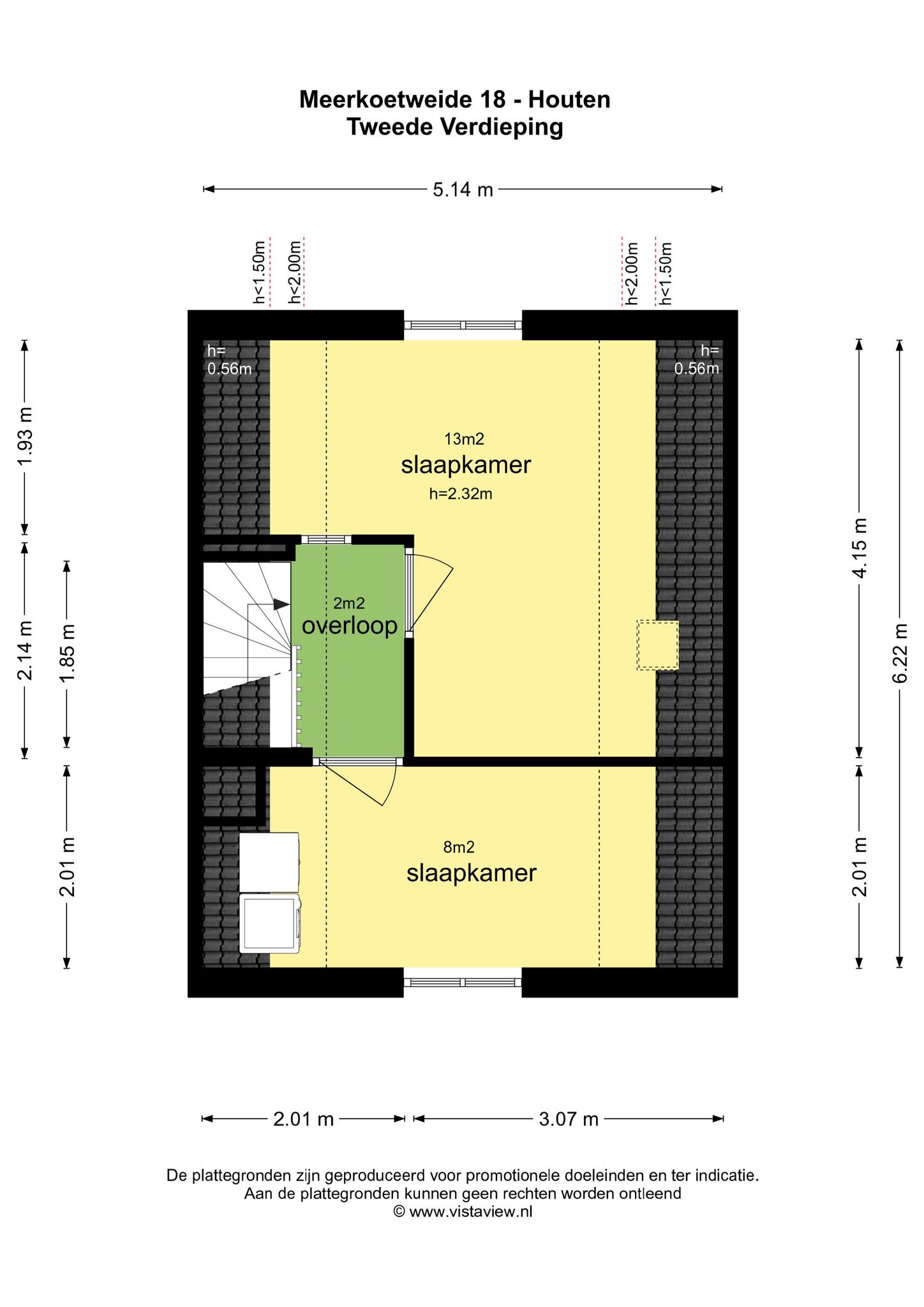 De opbouw bereik je via de vaste trap. Hier zijn twee ruime slaapkamers aanwezig en de opstelplaats voor de wasapparatuur.