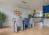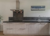 De aan de voorzijde gesitueerde keuken is voorzien van de volgende inbouwapparatuur: combi-oven, koel- en vriescombinatie, spoelbak, Franken direct kokend water kraan, vaatwasmachine, inductiekookplaat, rvs-afzuigschouw en veel kastruimte.