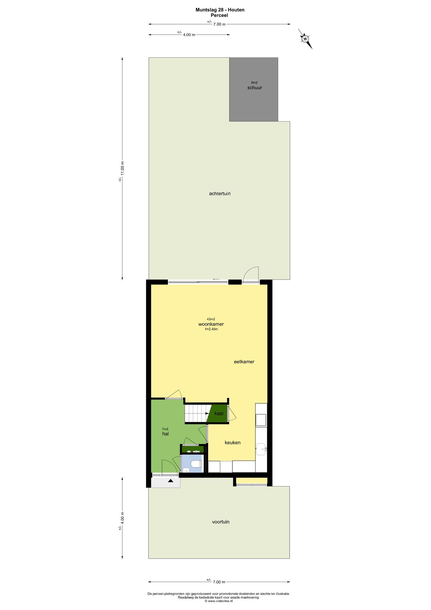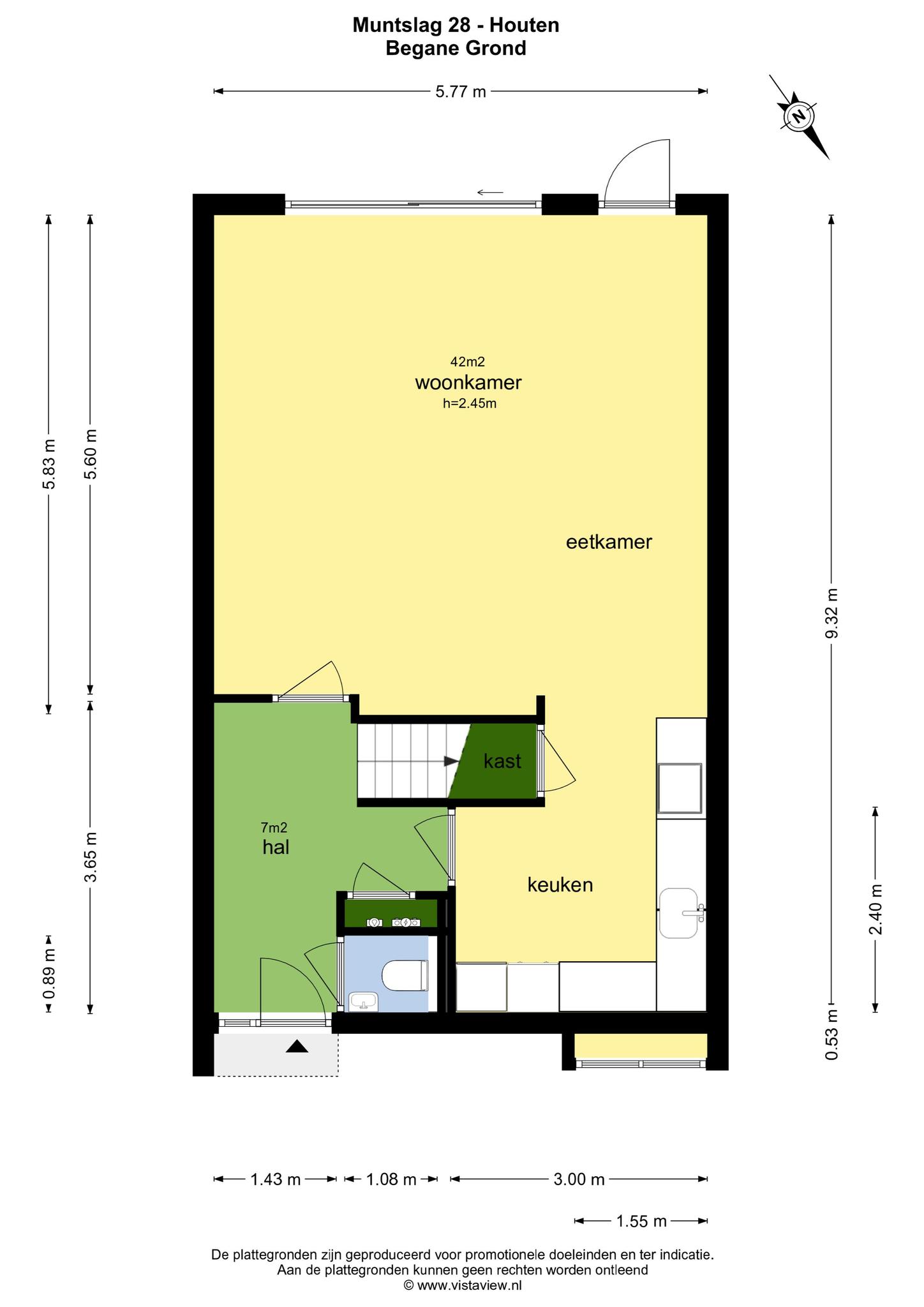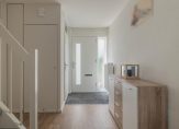 BEGANE GROND: voortuin, entree/hal, luxe toiletruimte met fonteintje, meterkast, garderobe, deur naar keuken met trapkast en ruime woonkamer van 42 m2.