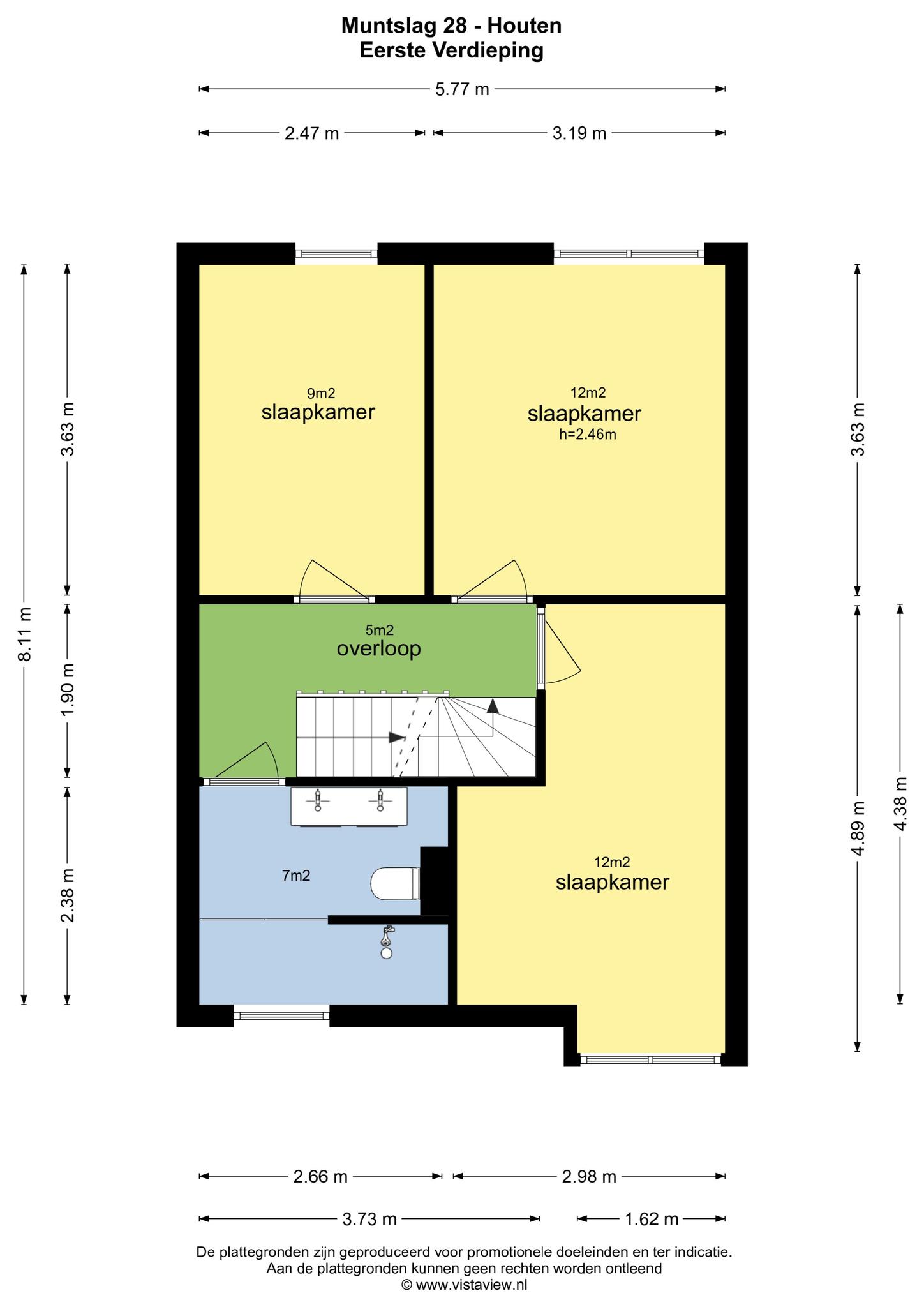 EERSTE VERDIEPING: ruime en lichte overloop met toegang tot drie slaapkamers van 12 m2, 12 m2 en 9 m2.