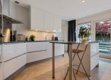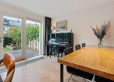 Via een brede doorgang loop je door naar de royale woonkeuken aan de achterzijde van de woning. Hier staan licht en ruimte centraal. De grote raampartijen en dubbele tuindeuren zorgen voor volop daglicht en een directe verbinding met de grote achtertuin (bijna 100 m2). De keuken is ruim opgesteld en beschikt volop over werk- en inbouwapparatuur zoals een Quooker. Deze leefkeuken is echt een fijne plek om te koken, te borrelen of lang te tafelen met familie en vrienden.