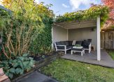 De tuin is bereikbaar vanuit de woonkeuken en/of de garage. Hier is een leuke overkapping gerealiseerd met extra opbergruimte. De afmeting van de tuin is circa 9.5 meter breed en 10.00 meter diep!
