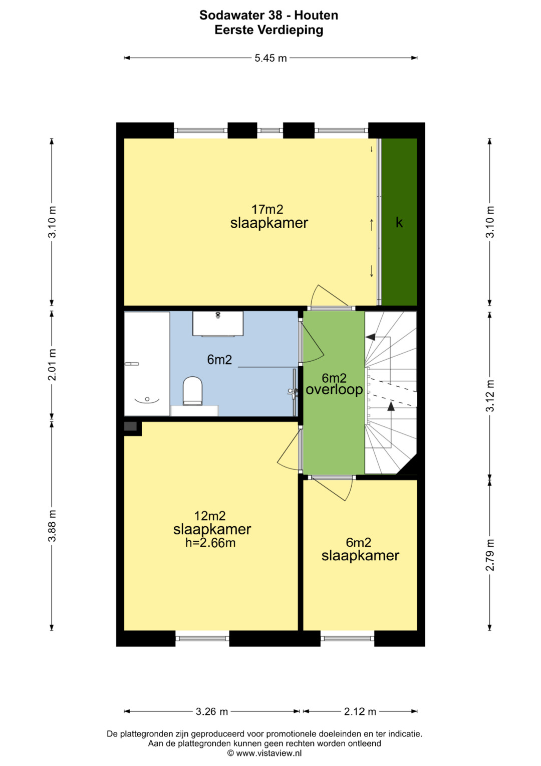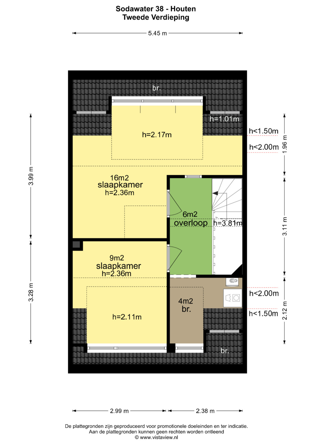 De afmetingen van de vertrekken op deze verdieping zijn als volgt: