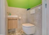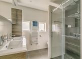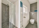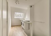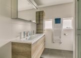 EERSTE VERDIEPING: overloop, luxe en moderne badkamer die in 2017 is vernieuwd en is voorzien van een tweede toilet (wandcloset), douchegedeelte met hand- en regendouche, dubbele wastafel in modern meubel, vaste kast, designradiator en een verlaagd plafond met inbouwverlichting. De slaapkamer aan de voorzijde is voorzien van een frans balkon en is 12 m2 groot. De slaapkamer aan de achterzijde is over de volledige breedte gesitueerd en heeft een oppervlakte van 15 m2.
