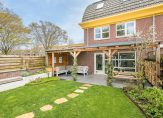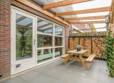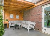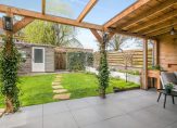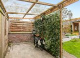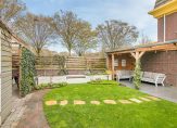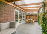 De tuin is in 2021 opnieuw en smaakvol aangelegd. Aan de achtergevel is een mooie overkapping geplaatst die zorgt voor een sfeervolle en heerlijke zonnige plek om overdag of tot in de late avonduurtjes te genieten. Ook naast de houten berging is een overkapping aanwezig die zeer praktisch is voor de fietsen of om je motorfiets te stallen.