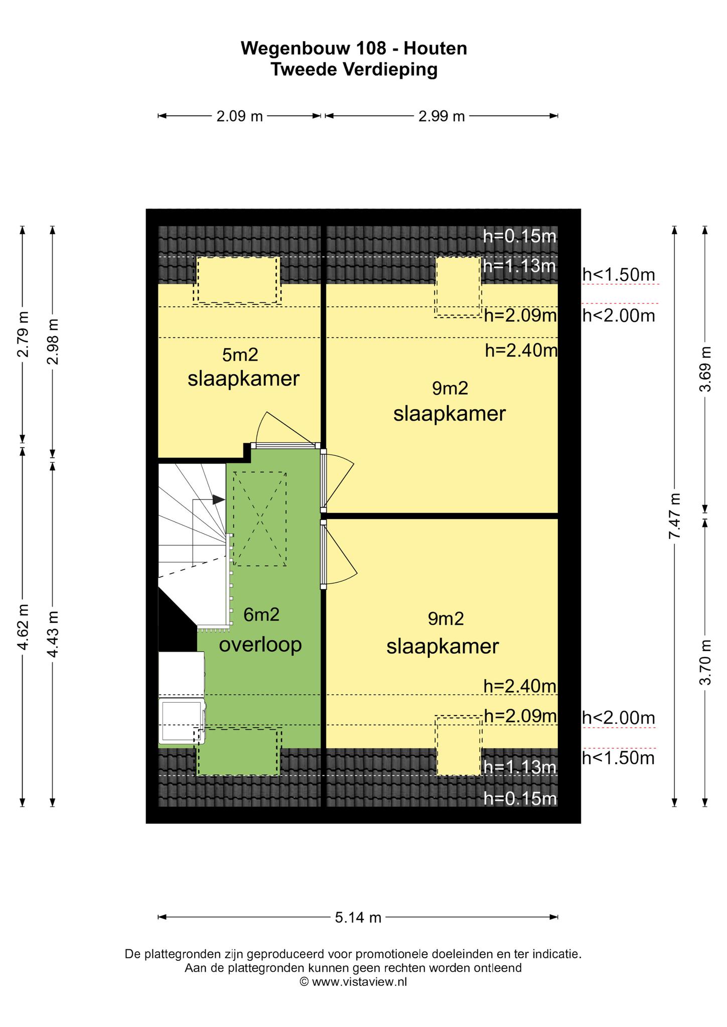 TWEEDE VERDIEPING: lichte voorzolder met opstelplaats voor de wasapparatuur en een dakvenster. Via de vlizotrap bereik je de zolderberging die zich over de volledige breedte van de woning bevindt. De drie slaapkamers op deze verdieping zijn 5m2, 9m2 en 9m2 groot. Ook de slaapkamers zijn voorzien van dakramen en radiatoren.