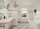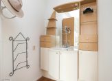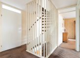 Eerste verdieping: De ruime J-vormige overloop biedt toegang tot de maar liefst 5 slaapkamers die er op deze verdieping aanwezig zijn alsmede tot het separate toilet. Ook treft men hier de ruime badkamer met douche, ligbad en 2 wastafels en opstelplaats wasmachine en droger. Eén van de slaapkamers heeft overigens een eigen badkamer met douche en wastafel. Een andere slaapkamer heeft toegang tot het aan de voorzijde gelegen balkon.