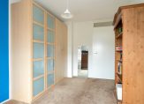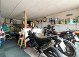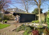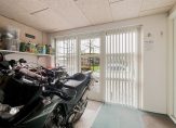 De voormalige garage is destijds voorzien van een glazen pui met loopdeur en is (eventueel na een kleine aanpassing) te gebruiken als berging, hobby- of praktijkruimte, kantoorruimte of als extra slaapkamer/gastenverblijf.